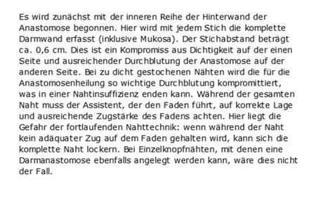 Im nächsten Schritt wird das ab- und zuführende Darmlumen zum tumorbefallenen Abschnitt verschlossen. Erst nach diesen Maßnahmen wendet er sich der Resektion des tumorbefallenen Darmabschnittes zu. Das Resektionsausmaß richtet sich dabei nicht an einem intestinalen Sicherheitsabstand aus, sondern an der Größe des Darmabschnittes, der durch die unterbrochene Blutversorgung nach radikulärer Gefäßligatur entfernt werden muss.